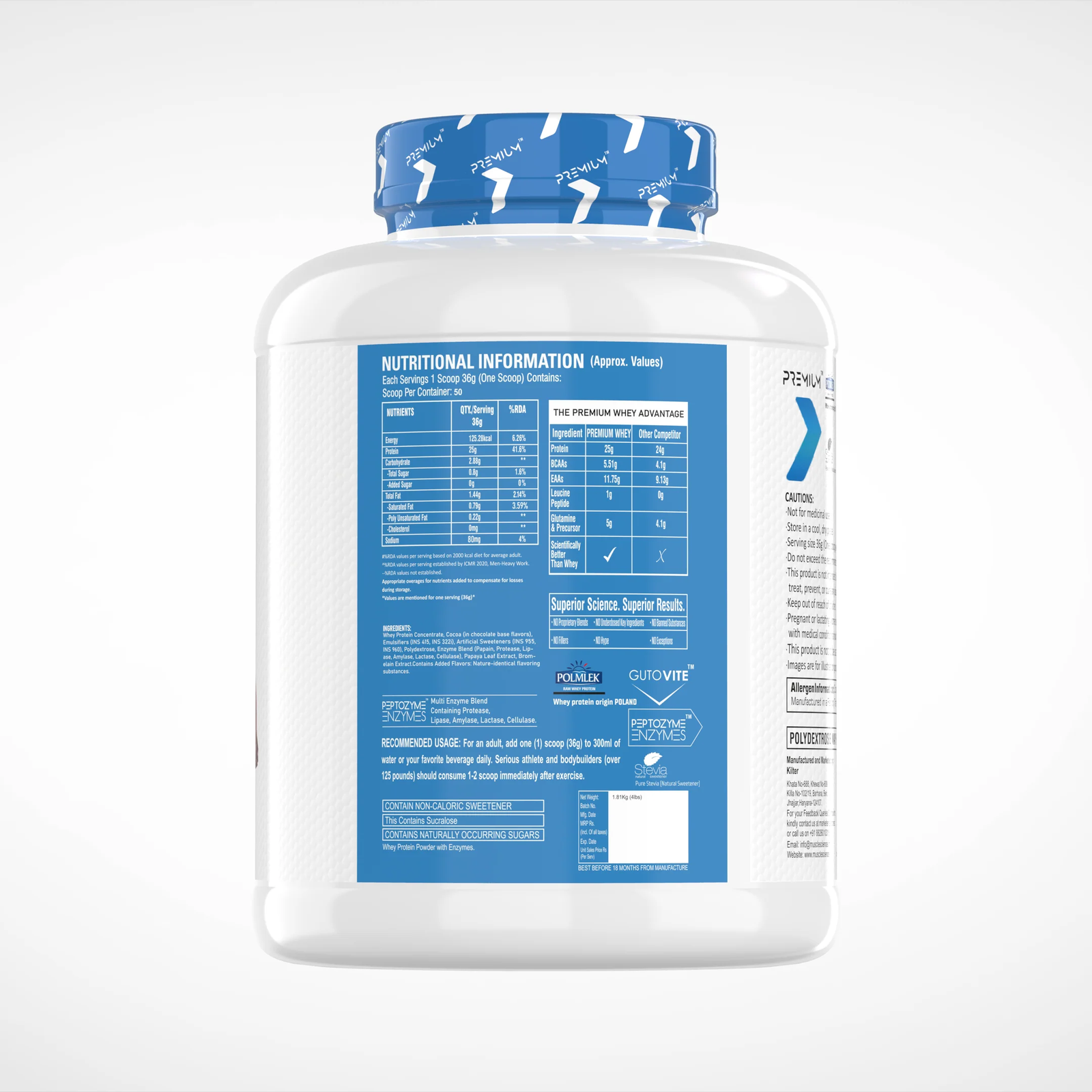 Fuel your fitness journey with Premium WPC 80, a high-quality whey protein concentrate designed to support muscle growth, recovery, and overall performance. Each serving delivers 25g of protein, 5.51g of BCAAs, and 2.66g of Leucine, ensuring your body gets the essential nutrients it needs post-workout.