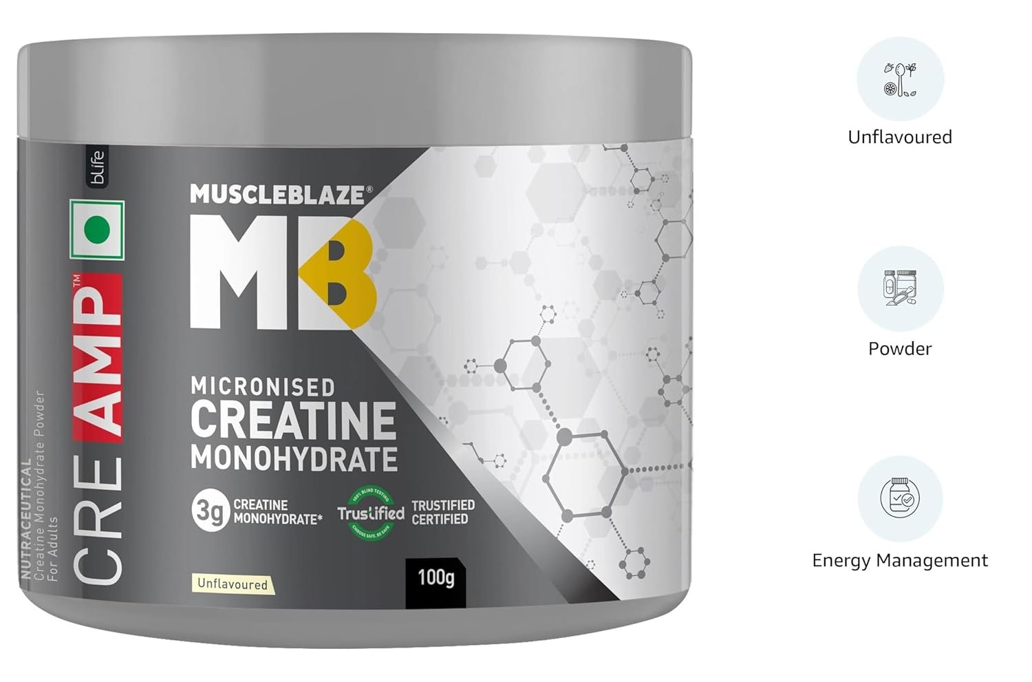 100% PURE CREATINE MONOHYDRATE: MuscleBlaze Creatine Monohydrate contains 3 g of fast-absorbing micronized creatine in each serving for rapid absorption rate with faster results in building strength and endurance